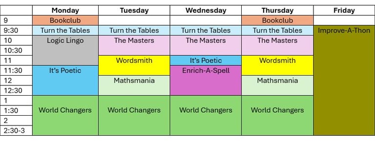 Holiday Programme Timetable